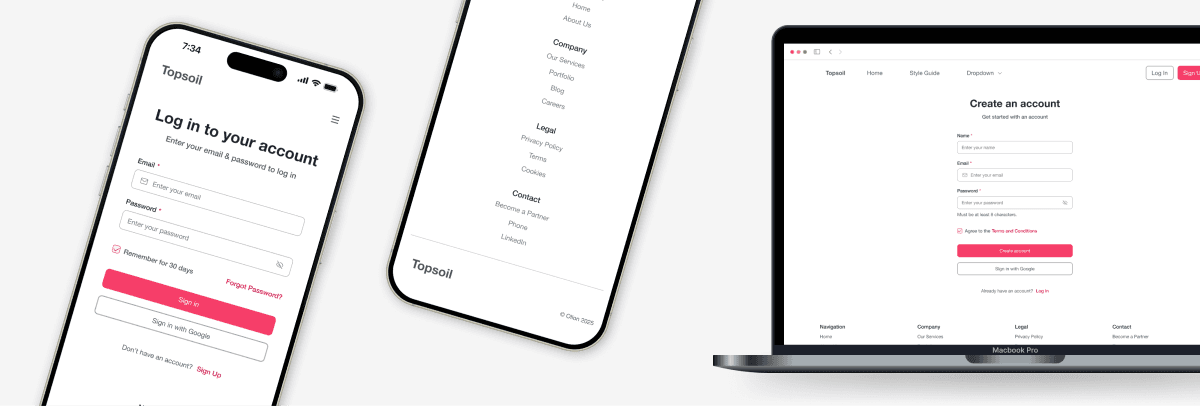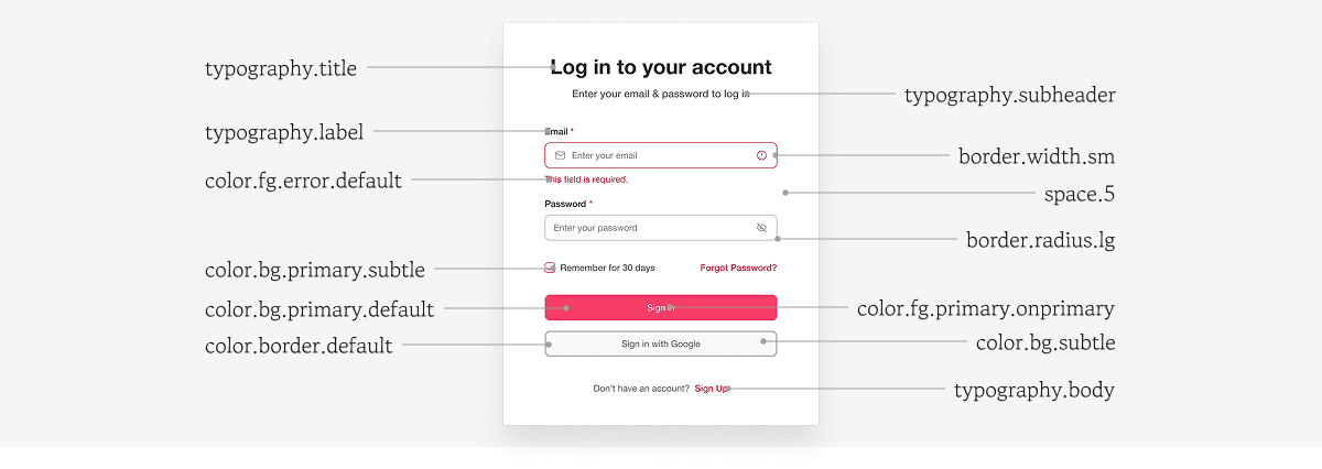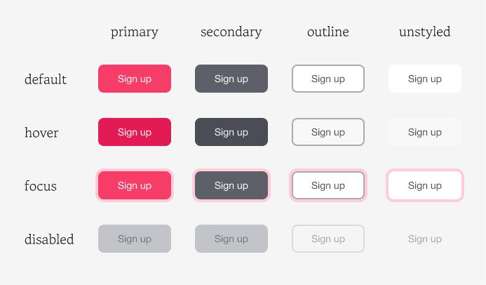 Initial components built were scoped to what our front-end tool actually needed for the login and signup flows, including buttons, inputs, checkboxes, radio buttons, links & icons.