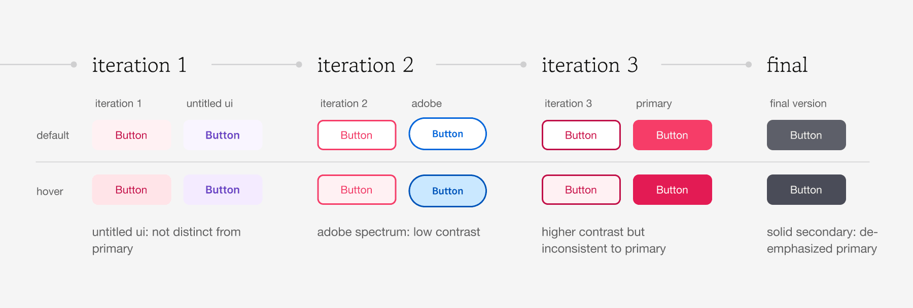 For example the secondary button was planned to follow adobe, but this fails when client brand colors don't meet contrast standards.